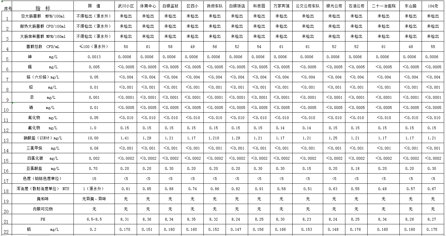 信息名稱 2020年4月用戶水龍頭水檢測(cè)表 發(fā)布機(jī)構(gòu) 白銀市給排水公司